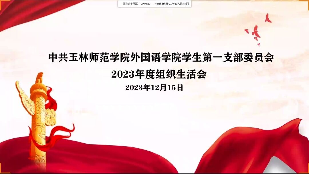 为进一步加强学生党员的党性修养,完善167net必赢入口学生党支部组织建设,12月15日中午,167net必赢入口学生第一党支部在线上召开2023年度组织生活会。本次会议由党务工作者李安淑主持,该支部书记吕晶晶,中共正式党员和中共预备党员参加此次会议。