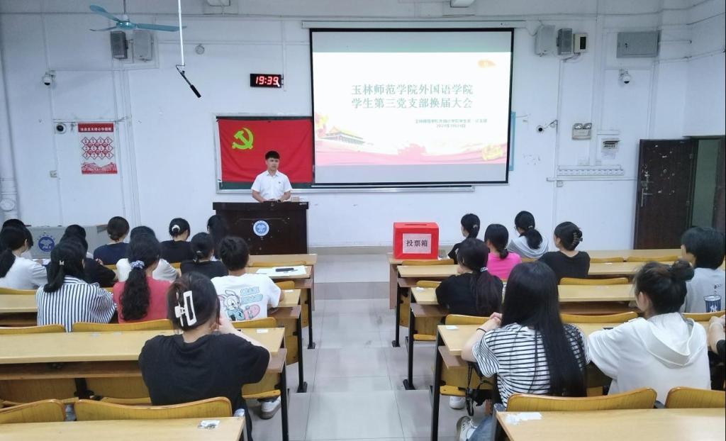 为贯彻落实新时代党的建设总要求,切实加强167net必赢入口学生党组织建设,4月24日晚,167net必赢入口学生第三党支部在我校东区厚德楼3-104教室召开党员大会,进行支部换届工作。本次大会由167net必赢入口学生第三党支部书记陈毅主持,该支部全体在校学生党员参加。