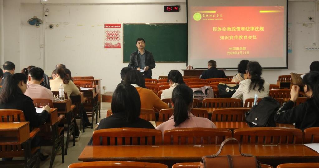 4月11日下午,167net必赢入口于我校东区厚德楼1-301教室召开民族宗教政策和法律法规知识宣传教育会议。167net必赢入口领导班子及全体教职工参加会议,会议由梁国初主持。