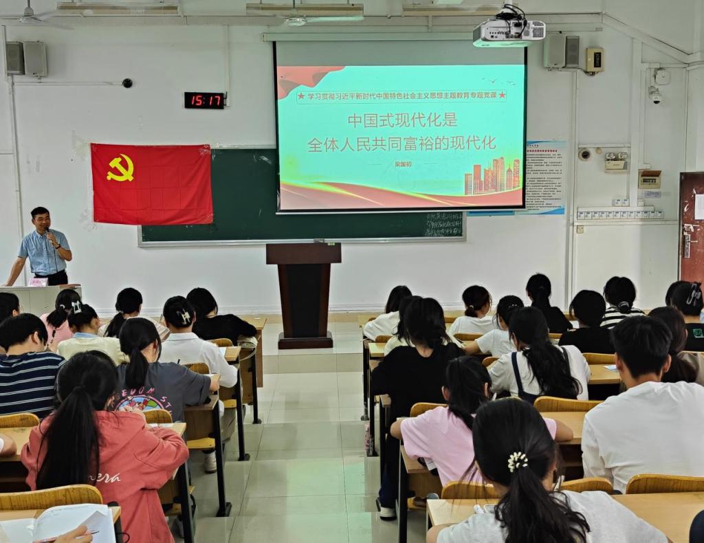 本次党课的主题是“中国式现代化是全体人民共同富裕的现代化”。课上,梁国初向在座入党积极分子阐述了中国式现代化的本质特征。他指出,中国共产党是中国特色社会主义事业的领导核心,中国式现代化发展必须坚持中国共产党的领导,集中精力解决问题,全面推进中华民族伟大复兴,实现全面发展。接着,他以现代科技技术为人民生活提供便利为例,向全体入党积极分子讲述了共同奋斗对全体人民共同富裕的重要意义。他强调,要推进全体人民共同富裕,就必须同心同德,团结奋斗,共建美好家园。最后,他对全体入党积极分子提出殷切期望,他希望全体入党积极分子在日常生活中能深入学习贯彻习近平新时代中国特色社会主义思想,用知识武装自己,积极向党组织靠拢。