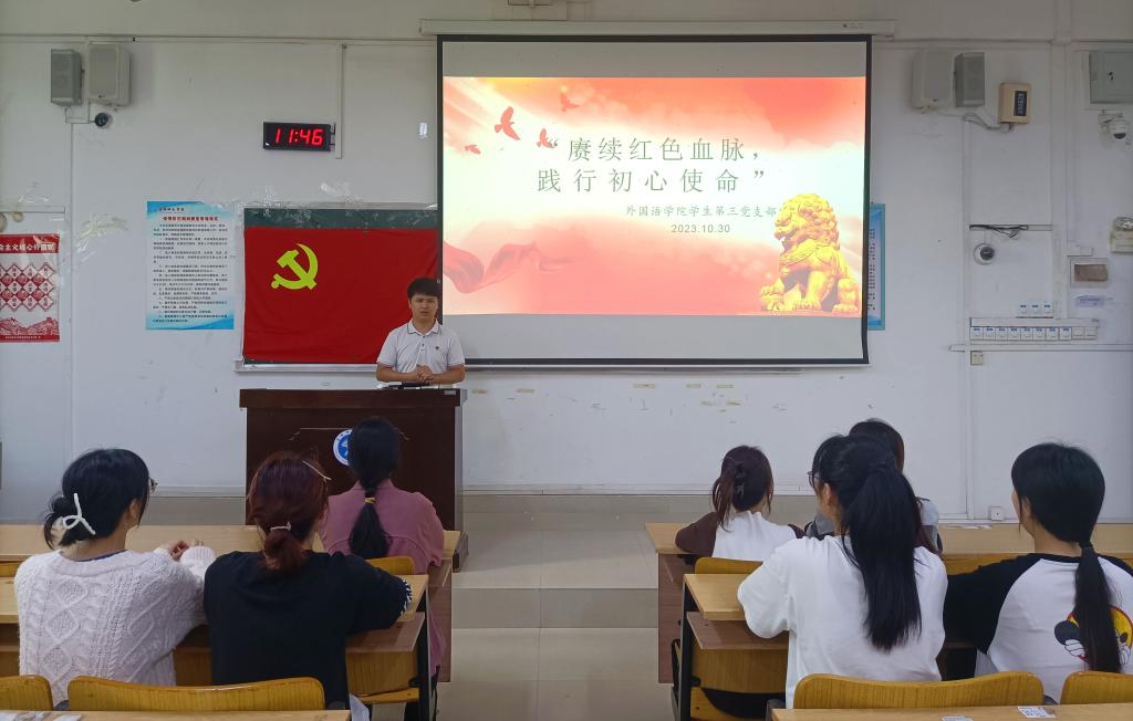 为加强学生党员的政治理论学习和党性修养,10月30日中午,167net必赢入口学生第三党支部在我校东区厚德楼2-104教室开展十月份党日活动暨政治理论学习会,此次党日活动由167net必赢入口学生第三党支部书记陈毅主讲,该支部在校学生党员参加。