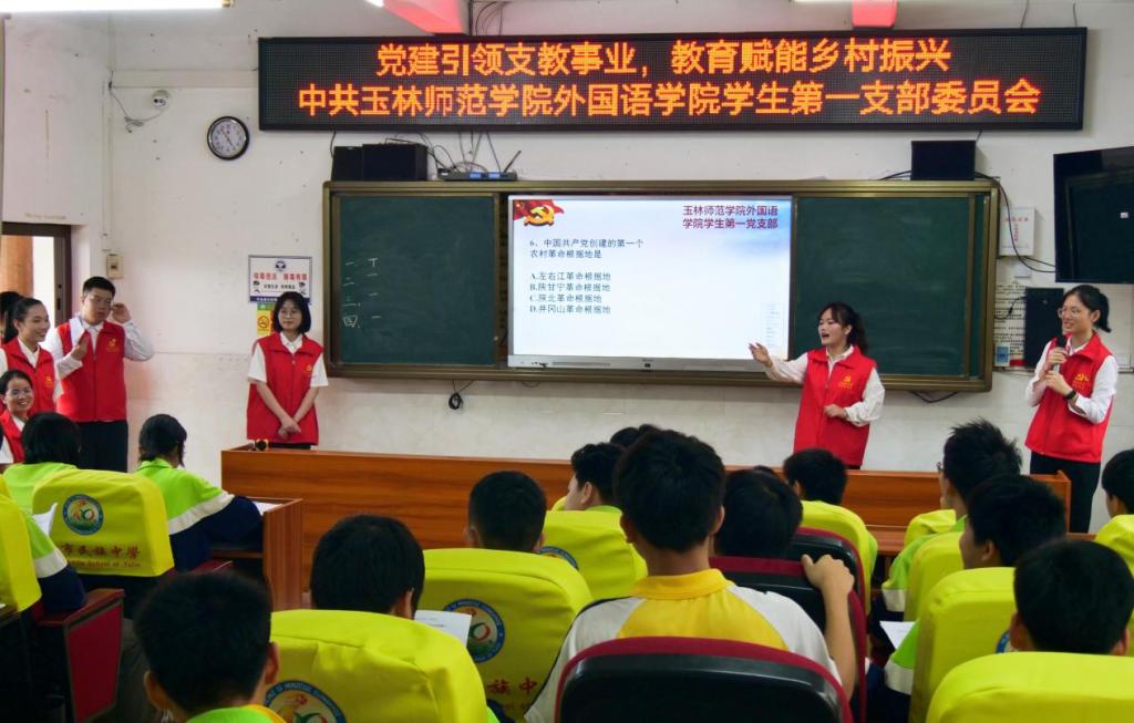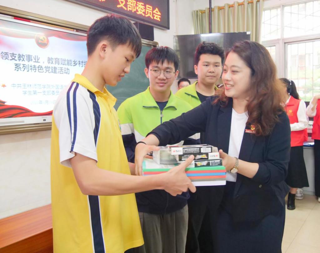 为深入学习贯彻党的二十大精神,实现城乡教研资源共享,引领师范生教师教育专业能力成长,4月19日,167net必赢入口学生第一党支部于玉林市民族中学开展特色党建活动。167net必赢入口,167.nt必赢官网学生第一党支部书记吕晶晶、全体在校学生党员及玉林市民族中学优秀学生代表参加了此次活动。