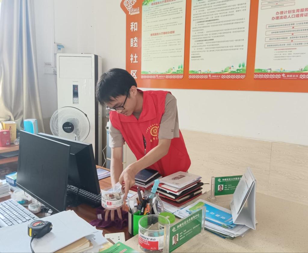 活动伊始,和睦社区工作人员对学生党员们的到来表示欢迎。活动过程中,参加此次党日活动的10名学生党员与和睦社区的工作人员积极交流。和睦社区的工作人员给学生党员们布置了志愿任务,学生党员们在和睦社区工作人员的指导下,分工合作,齐心协力,干劲十足,对资料进行认真仔细分类整理,认真擦拭服务台、桌椅、抽屉、地板等地方,不遗落任何卫生死角。大家发扬不怕苦的精神,最后完成了清洁任务。最后,参加此次党日活动的全体成员与和睦社区工作人员进行合影。