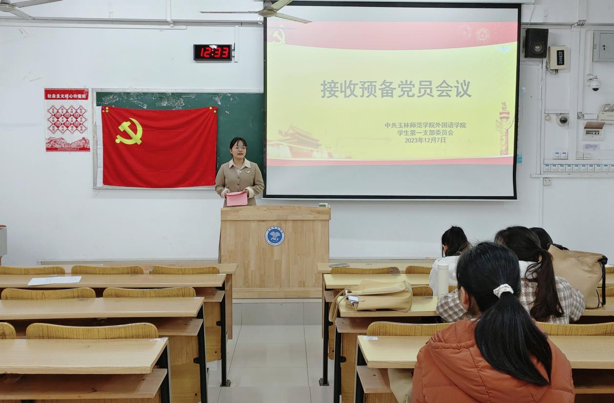 大会严格遵循党组织接收预备党员程序进行。会上,漆唐丽介绍此次会议议程及参会人员到场情况。接着,大会通过举手表决的方式一致同意许凤英、张彩虹担任监票人,杨婷、廖土珍担任计票人。紧接着,黄燕丽等九名入党发展对象依次上台向党组织汇报其本人在工作、学习、生活和思想方面的情况,并对其自身不足进行检讨。随后,各入党发展对象的入党介绍人和班级代表对其进行民主评议,大会采取不记名方式进行投票表决。经投票,该支部一致同意接收黄燕丽等九名入党发展对象成为中共预备党员。最后,吕晶晶对本次大会进行总结发言,她希望在座预备党员能够以正式党员的标准严格要求自己,在思想和行动上不断完善自己,争取早日成为一名合格的共产党员。