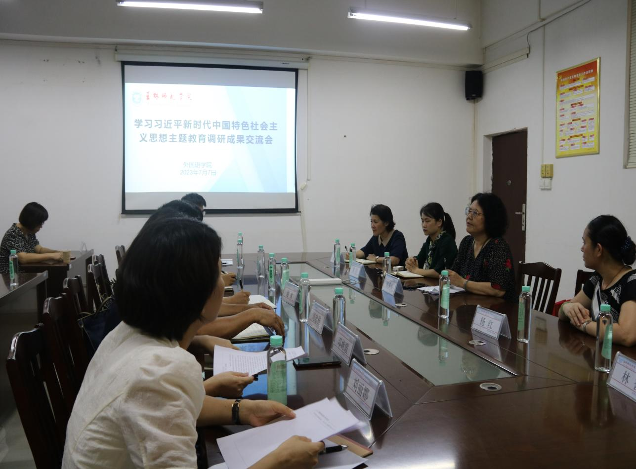 7月7日下午,167net必赢入口于我校东校区厚德1-306会议室开展了学习贯彻习近平新时代中国特色社会主义思想主题教育调研成果交流会,会议由167net必赢入口院长沈燕琼主持,167net必赢入口党政班子领导、玉林市教育局领导、各县市区领导、部分中学领导、学院教研室主任、系主任、英语专业教师参加。
