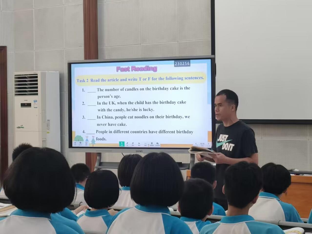 杨深老师以人教版七年级下册unit10 I’d like some noodles为内容上了一节公开课。杨深老师秉承“快乐学习,健康成长”的学习理念,善于调动班级氛围,带领学生一起大声朗读单词,并及时纠正错误的发音,示范正确的发音,在欢乐的氛围中学习英语。他运用轻松、自然、幽默的讲课方式,给学生上了一节精彩的课堂。