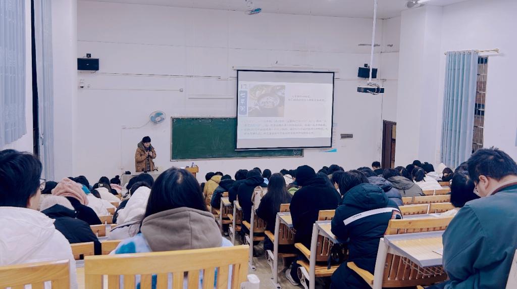 讲座上,石亮亮以日本传统节日为主题,从饮食文化、礼仪习惯以及传统民俗等方面进行介绍。他以日本过年的习俗为例,结合亲身经历,以深入浅出的方式为在场的学生们详细解读日本传统节日所蕴含的丰富文化内涵以及中日文化习俗的差异。整场讲座内容丰富,生动有趣,学生们听得津津有味,受益匪浅。