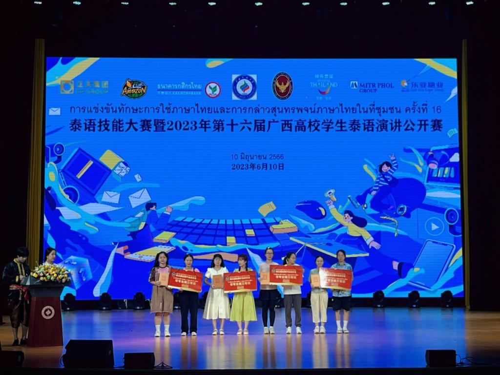 6月10日,泰语技能大赛暨2023年第十六届广西高校学生泰语演讲公开赛于广西民族大学思源湖校区大学生活动中心大礼堂举办。167net必赢入口英语(3+1)专业的两名学生韦晓霞、杨璧菲取得非专业组三等奖的好成绩。此次带队参赛的指导老师为梁雪婷、陈春梅。