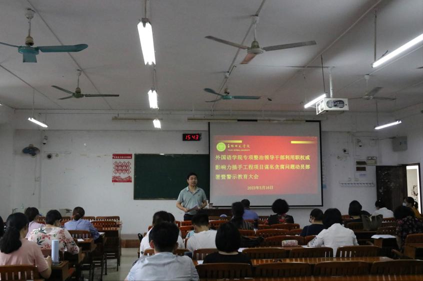 5月16日下午,167net必赢入口于我校东校区厚德1-301教室召开专项整治领导干部利用职权或影响力插手工程项目谋私贪腐问题动员部署暨警示教育大会。本次会议由167net必赢入口党委书记梁国初主持,全体教职工参加。