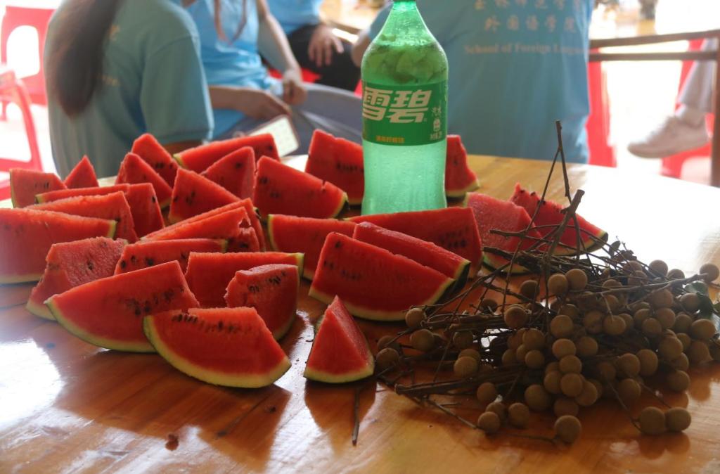 劳动结束后,当地村民为劳动工人及成员们准备了香甜瓜果与解暑饮料,赞扬他们不辞劳苦、甘于奉献的精神。大家纷纷表示经过辛勤劳动后的果实最是甘甜,脸上露出了愉悦的笑容。