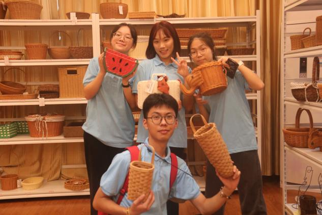 接着,同学们来到了黄图芒编厂。一个个形态各异、色彩纷呈、栩栩如生的博白芒编映入眼帘。生态园负责人冯李明为大家详细讲解芒编的文化。博白芒编属自治区级非物质文化遗产之一,作为广西本土特色文化手工艺品,具有经久耐用、久用如新的特点,目前从单一手工编织转变为多元化装饰、盛装礼品等综合性多用途。芒编汇聚着博白人民辛勤劳作的智慧,不仅增加人民的收入,还具有宝贵的文化价值。冯李明表示,未来博白芒编的文化一定传播到全世界,走上国际舞台,大展魅力,大放光彩。