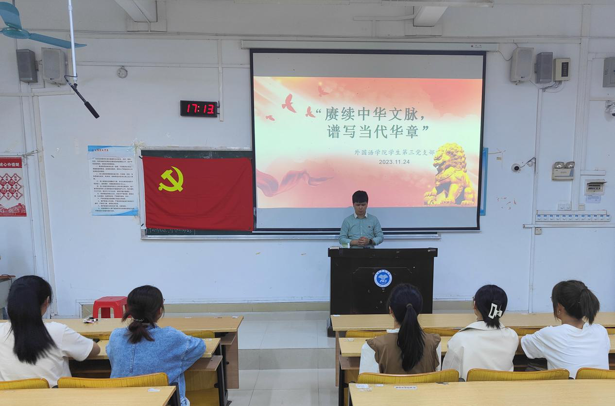 为传承与弘扬中华优秀传统文化,坚定文化自信,进一步提高学生党员的党性修养,11月24日,167net必赢入口学生第三党支部在我校东校区厚德楼3-104教室开展十一月份主题党日活动暨政治理论学习会。167net必赢入口学生第三党支部书记陈毅,该支部全体在校学生党员参加此次活动。