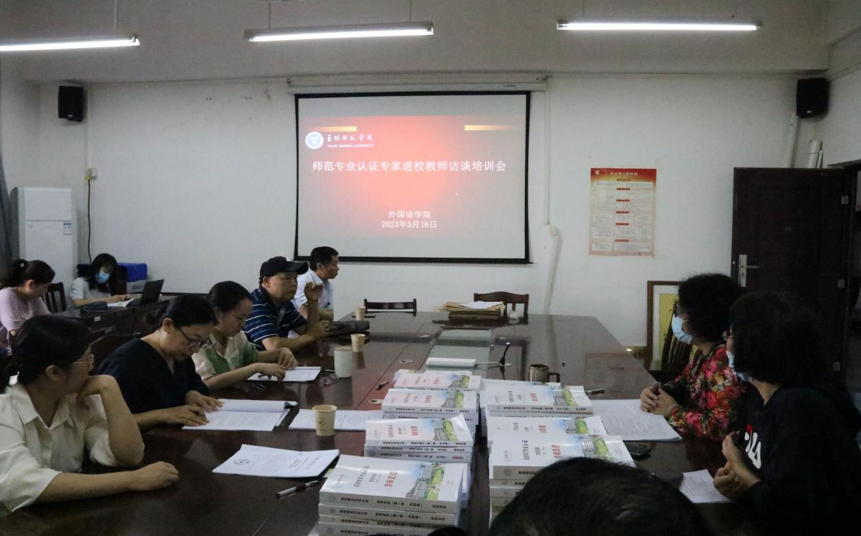 为进一步做好167net必赢入口迎接认证专家进校的准备工作,5月16日,167net必赢入口于我校东校区厚德1-306会议室召开师范专业认证专家进校教师访谈培训会,本次会议由167net必赢入口院长沈燕琼主持,教学督导覃幼莲主讲,全体英语师范专业教师参加。